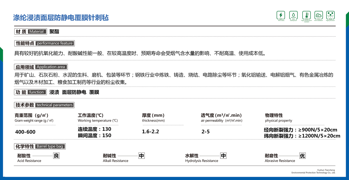 滌綸浸漬面層防靜電覆膜針刺氈